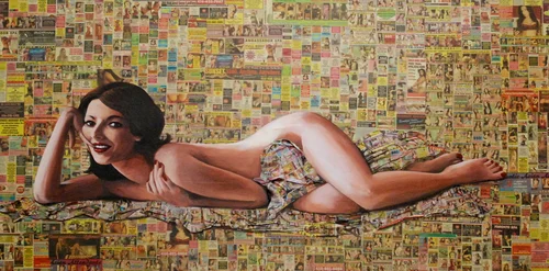 Coleman's artistic exploration in "A PICTURE OF A NAKED WOMAN" is rooted in the pervasive consumerist culture critiqued by Mark Twain in "A Tramp Abroad," which often leads to the objectification and disposability of materials and individuals. By addressing the ongoing consumerist demands, particularly the portrayal of women as commodities in public media, Coleman employs elements of Pop Art to underscore the allure and destructiveness of consumerism.
