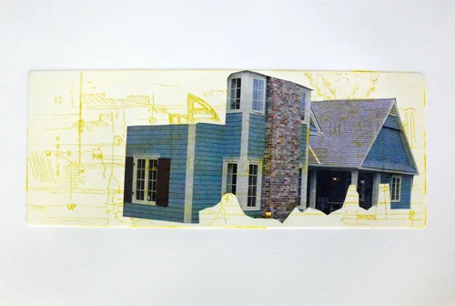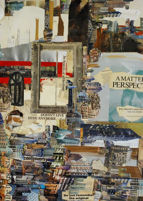 CONDOSCAPES - collage and assemblage works on found and discarded materials such as blue prints, canvas, doors, magazines and photo litho plates.