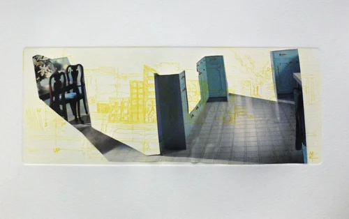 Blueprints of the actual building were found by Coleman in a neighbouring recycling bin which inspired many of the works in the series.