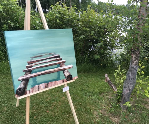 Wood panel wrapped in fabric, oil paint