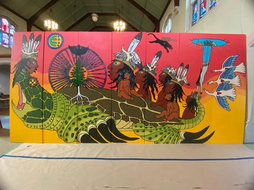 “USW District 6 is honoured to display Indigenous artist Philip Cote’s mural, The Original Family, at the district’s main office in Toronto.